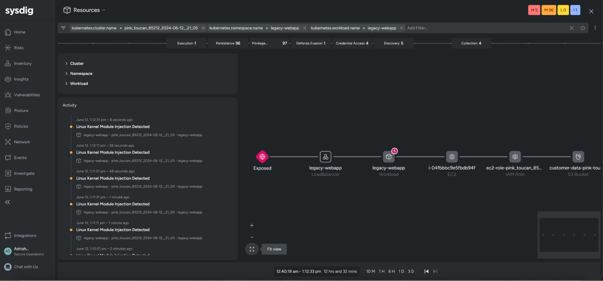 Sysdig also automatically correlates data from other sources, including workloads, instances, and IAM roles, to visualize the entire attack path as a graph. This automatic cross-cloud context and correlation enables security teams to investigate the potentially compromised user in minutes and then respond immediately. Based on this context, it is clear that this user has been compromised.