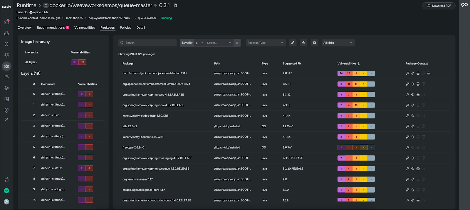 Sysdig also helps trace problems back to their source. With Layered Analysis, you can break images down by layer and pinpoint exactly where an issue originated. By fixing the problem at the source, you eliminate it everywhere it appears, making remediation faster and more durable.