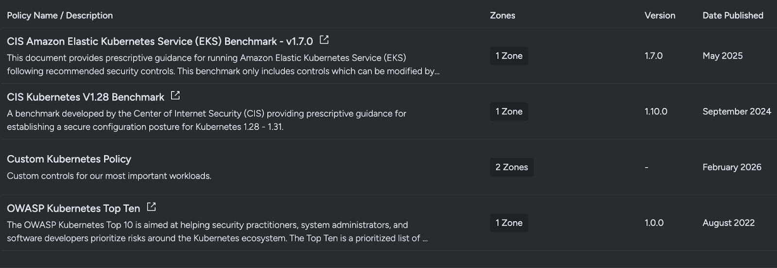 You can scope posture expectations to workload attributes such as labels and Helm metadata, allowing more granular enforcement across clusters and namespaces without relying solely on namespace-level boundaries.