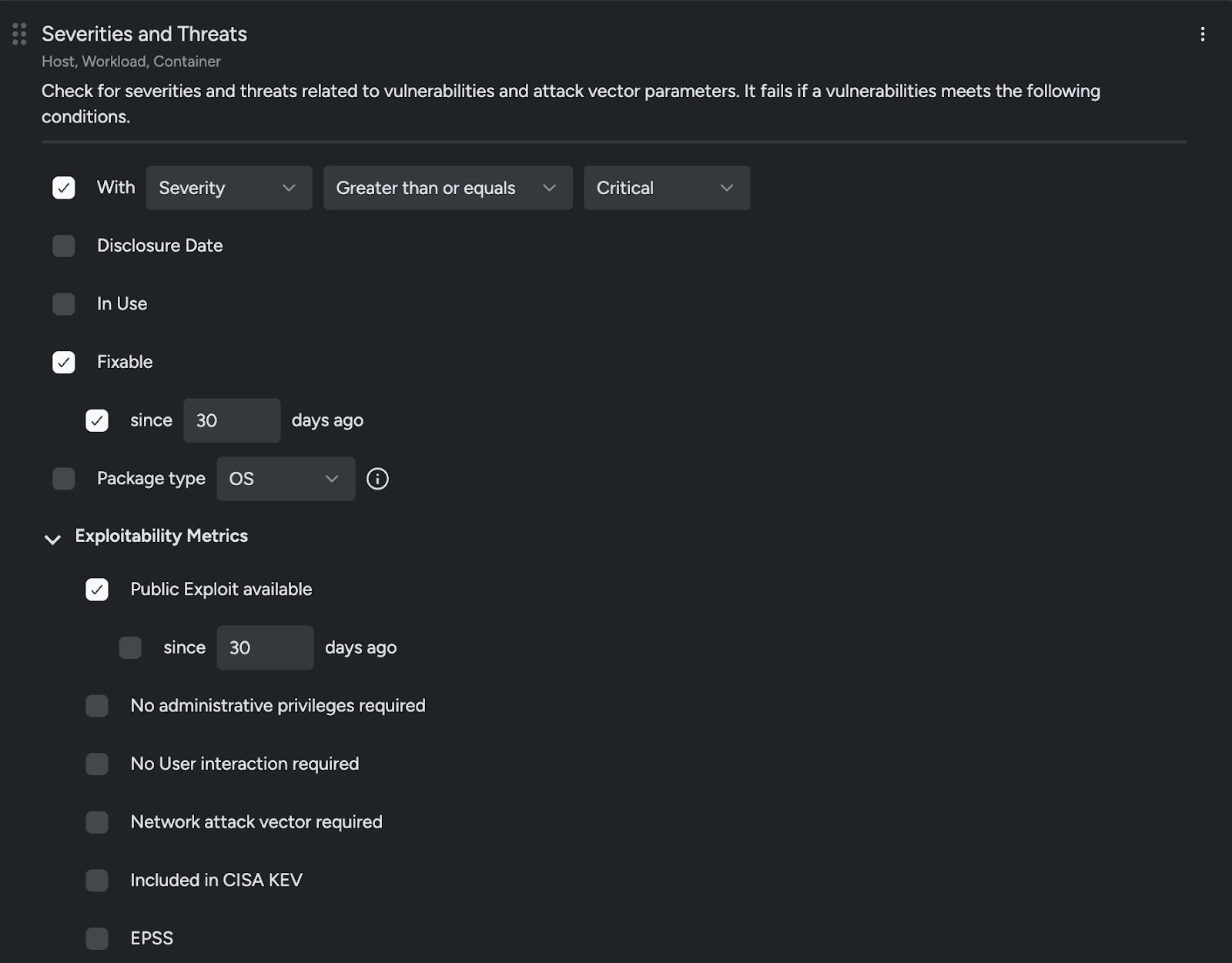 x Severity greater than or equal criticalThat is not a configuration-only decision. It is a risk-based posture decision.