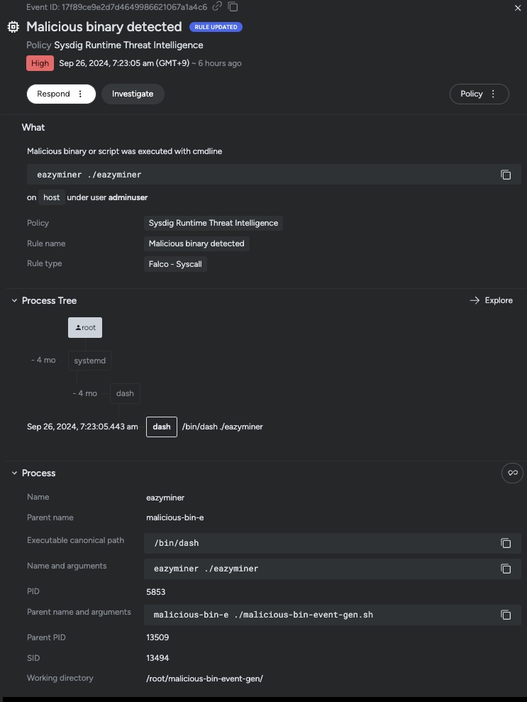 数分間ツールを操作してみると、Sysdig Sageがランタイムイベントを理解するのに役立つことが明らかになりました。しかし、それはあくまで1つのイベントに過ぎません。