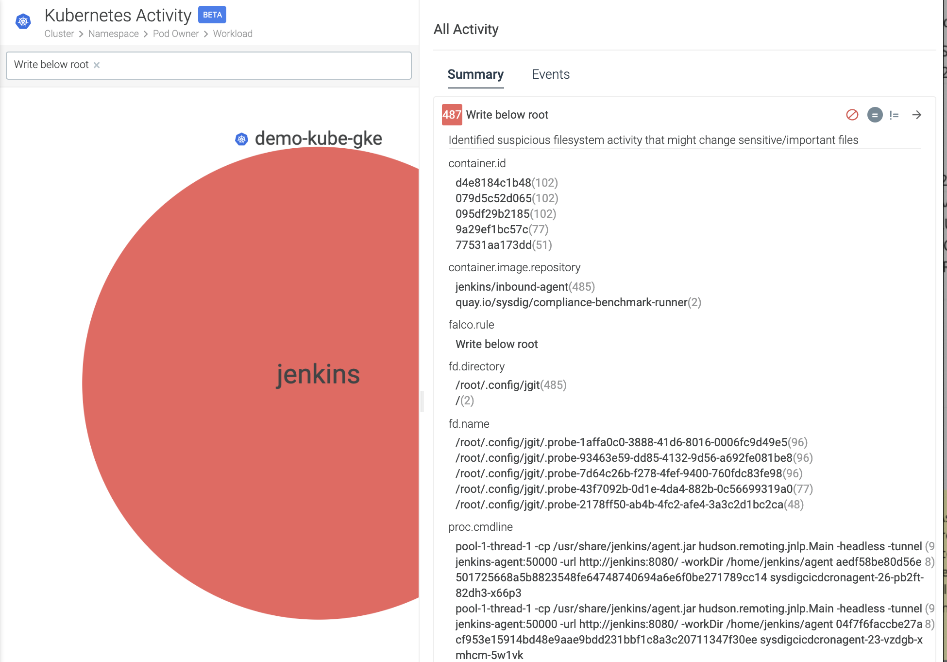Sysdigではこの問題を認識しています。Sysdig Secureを有効にした直後は、何百ものセキュリティイベントが発生する可能性があるほど、アウトオブボックスのルールセットは多岐にわたります。