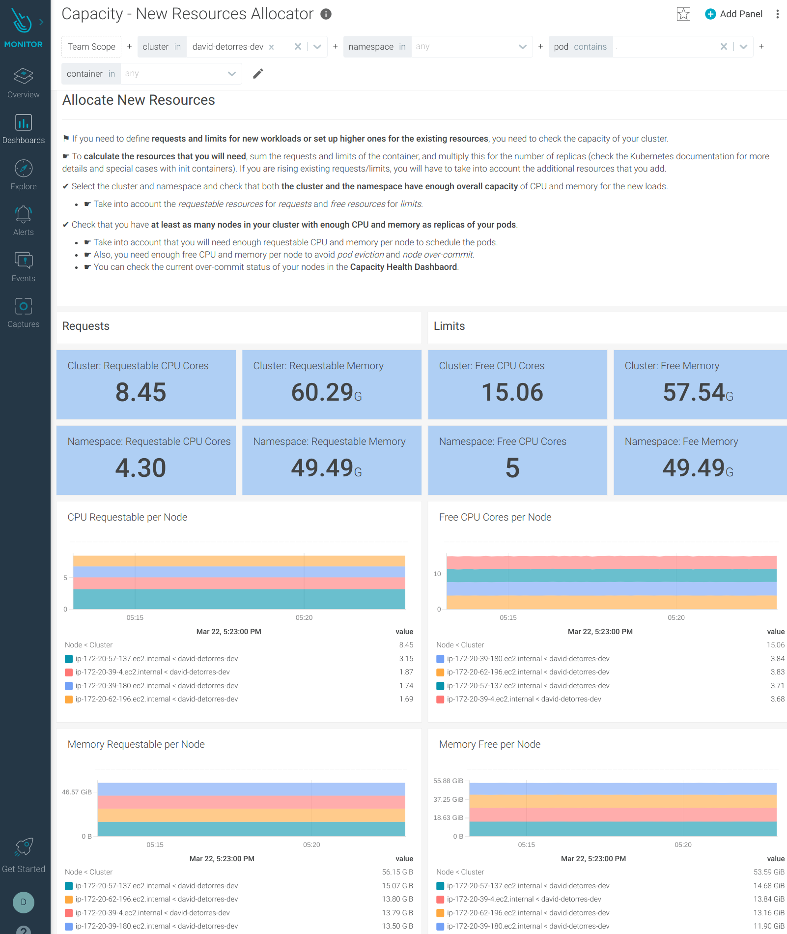 Capacity Optimizerダッシュボードを使用することで、インフラでの余分なコストを回避し、クラスターにおいて安全にリソースを割り当てることができます。
