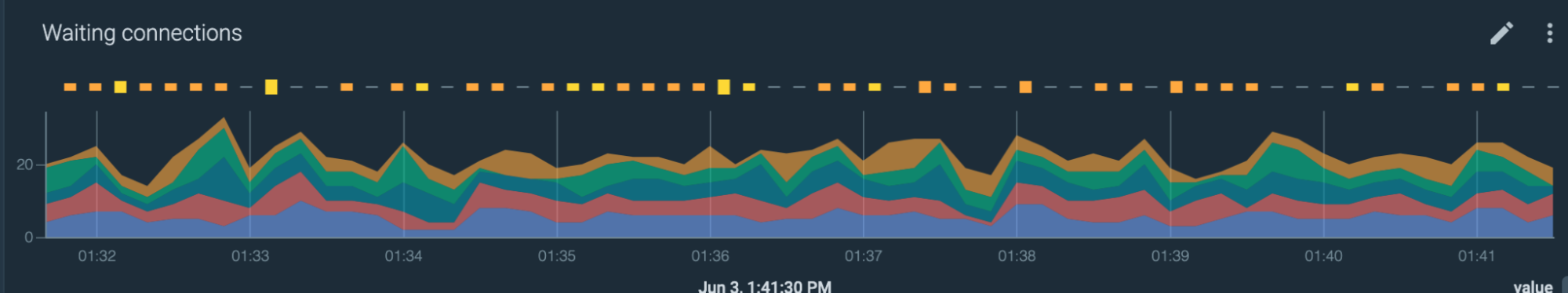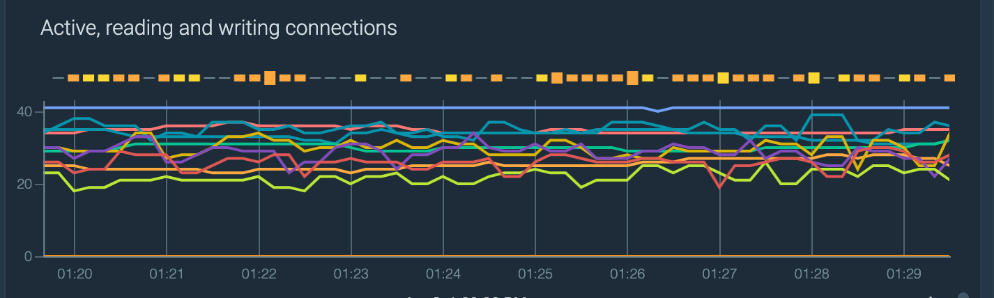 以下のメトリクスを使って、nginx のアクティブな接続を見てみましょう。どれが読み書きを行っているかに注目することもできます。
