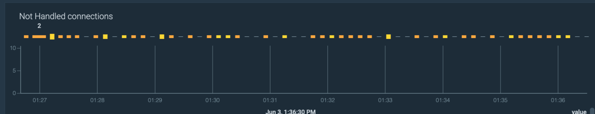では、nginx で処理されていないコネクションがどれだけあるかに着目してみましょう。受理されたコネクションから処理されたコネクションを取り除けばいいのです。nginx exporter は両方のメトリクスを提供してくれます。