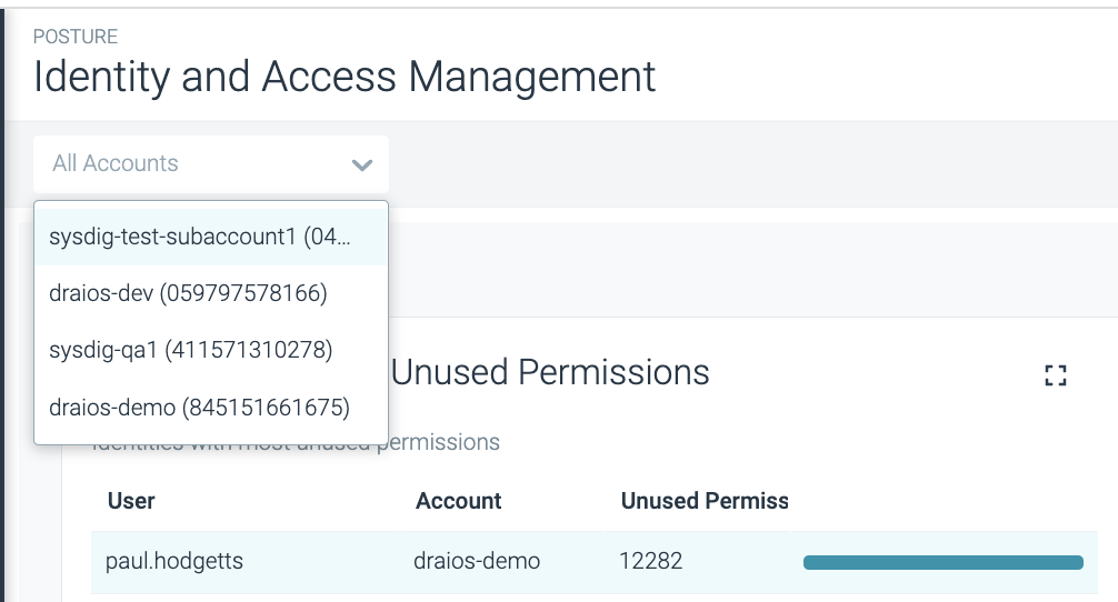 クラウド・サービスの普及に伴い、ユーザのアクセス・ポリシーも変化していますが、大多数の企業は過度に寛容なポリシーを採用しているため、攻撃対象となり、重大なセキュリティ・リスクとなっています。Sysdigのクラウドアカウント向けPermissions and Entitlements (P&E)モジュールを使えば、数分でこれらのリスクを見直し、軽減することができます。