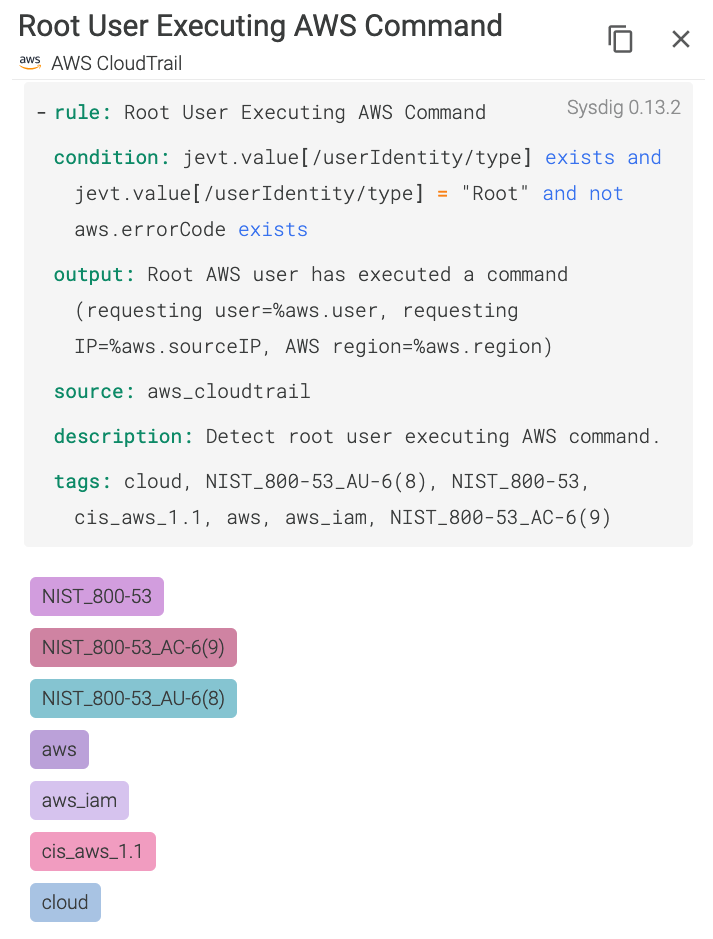 すでにSysdig Secureのルールをランタイム検知に使用している場合は、クラウド環境になったからといって別のルールポリシー言語を学ぶ必要はありません。