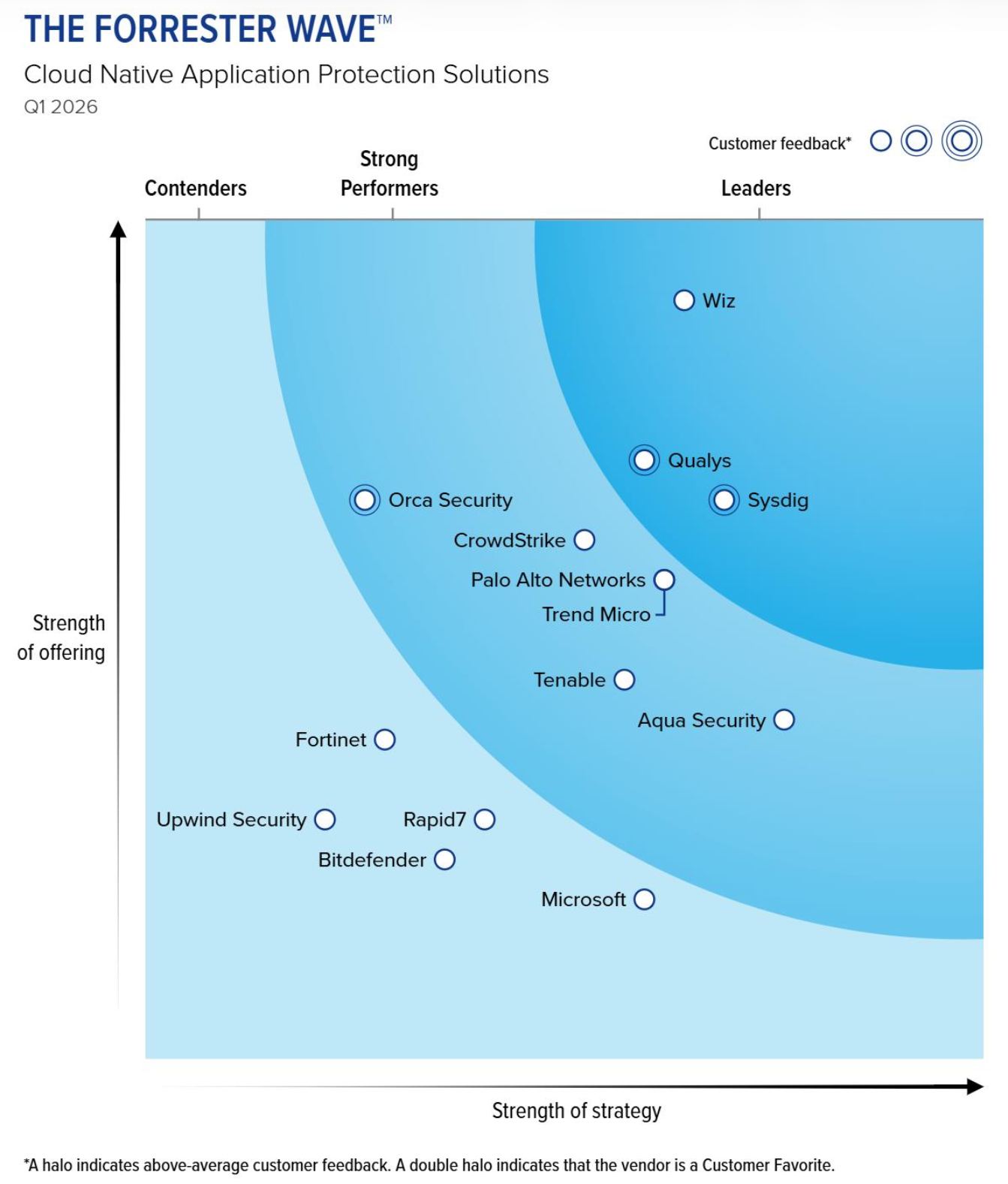 Sysdig has been named a Leader in The Forrester Wave™: Cloud Native Application Protection Solutions, Q1 2026, as one of three vendors receiving the highest designation in Forrester’s assessment. Forrester evaluated 14 top CNAPP providers in the market and detailed their findings to help security teams understand which platforms are best positioned to protect modern cloud environments. We believe this recognition reflects Sysdig’s evolution into a complete CNAPP platform, built on a runtime-powered foundation to secure cloud-native applications wherever they run.
