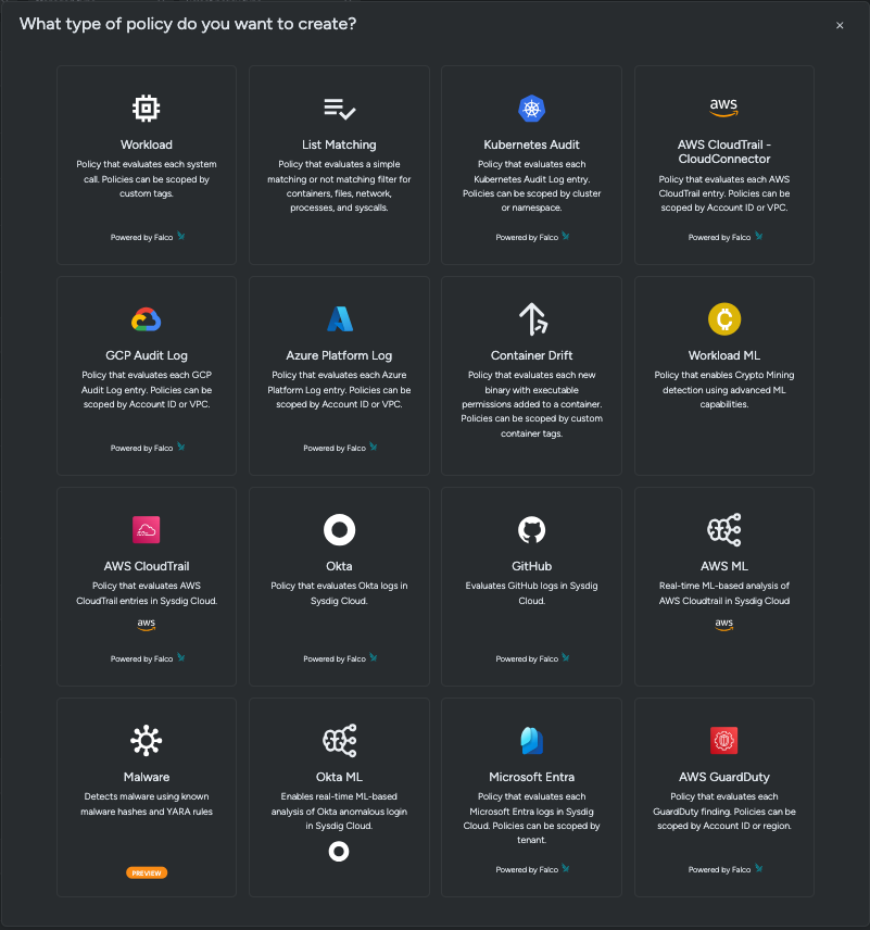 - Sysdig のお客様は、リアルタイムの脅威検出とカスタマイズ可能な Falco ルールを統合し、異常検出に機械学習ポリシーを活用することで、クラウド環境全体で高度な脅威を特定し、軽減します。
