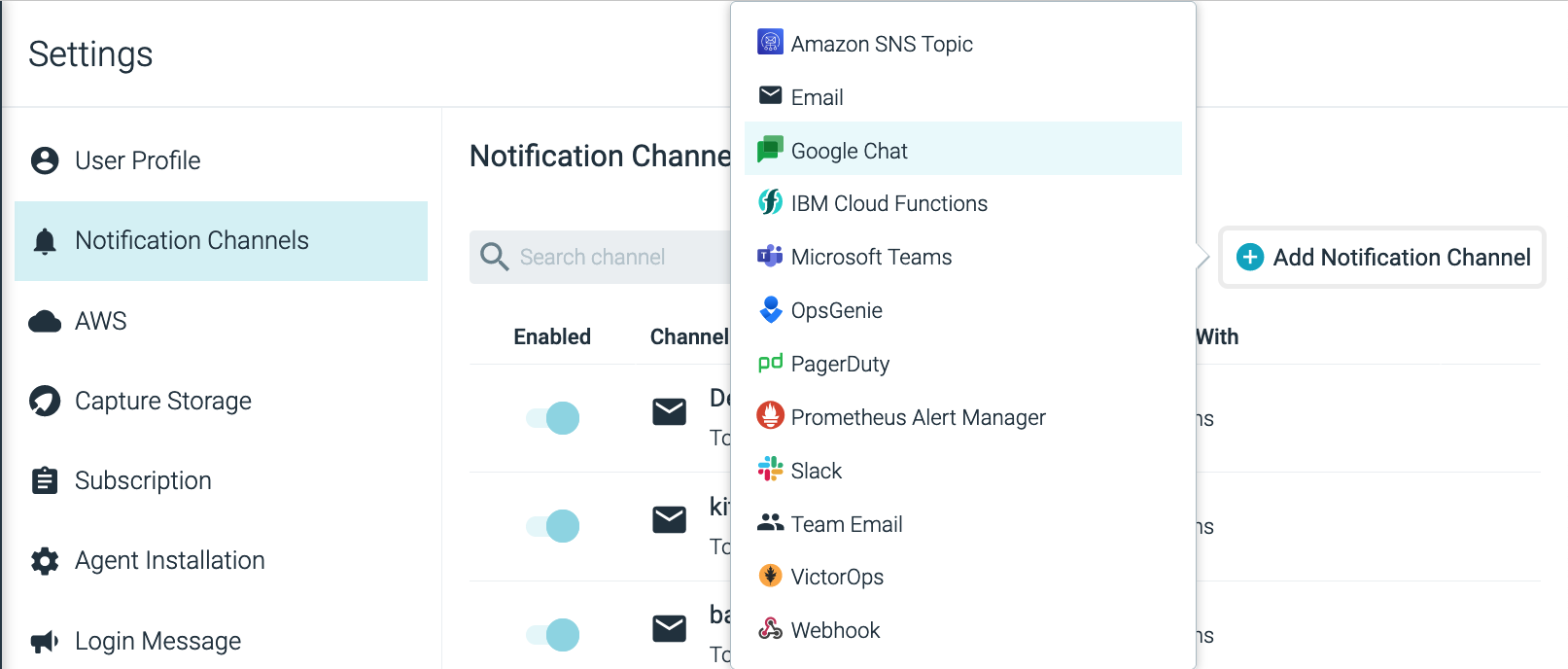 Sysdig Monitor SaaSのすべてのお客様が、新しいGoogle Chatチャネルインテグレーションを利用できます。これは、Webhook インテグレーションを使用してGoogle Chatにアラートを送信することを可能にします。