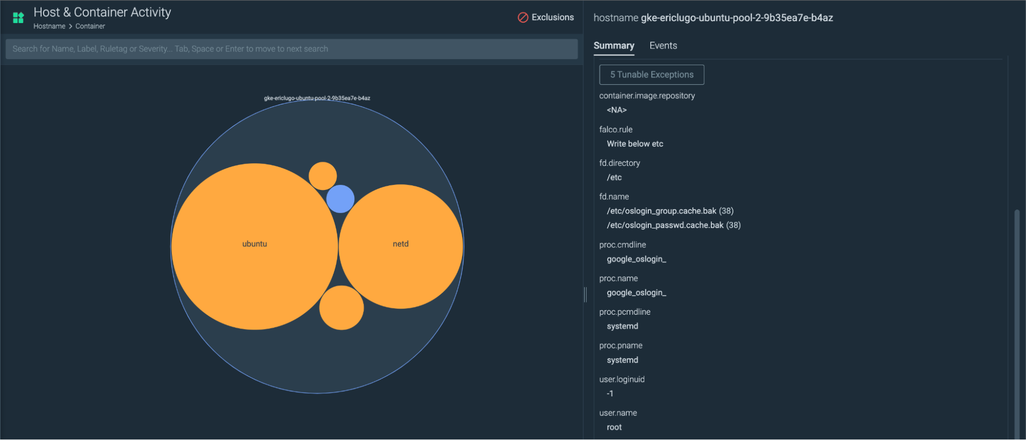 Insightsの「ホスト&コンテナ」ビューをリリースしました。K8s以外の環境をご利用のお客様は、ホストとコンテナレベルで同様の情報を得ることができるようになりました。また、この機能により、お客様はインサイトチューナーを使用して、これらのワークロードから例外を作成することができます。