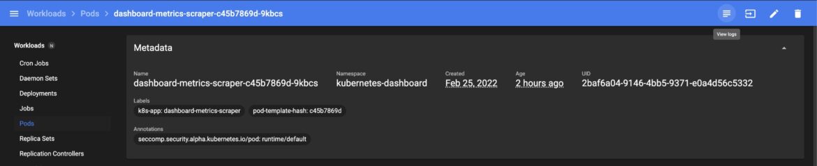 pod/dashboard-metrics-scraper-c45b7869d-9kbcs 1/1 Running 0 4m5s