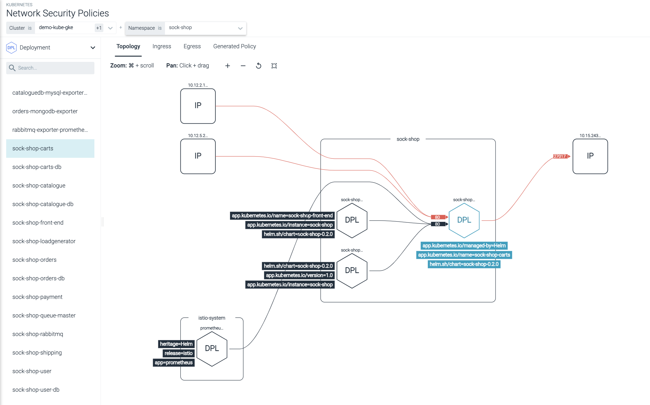 Secure Kubernetes networks with automated microsegmentation. See and audit all communications between pods, services, and applications.